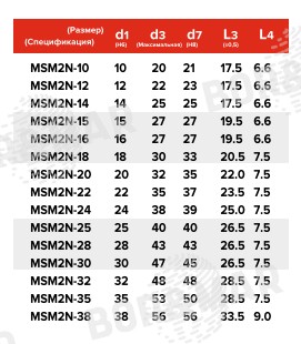 | Размер, спецификация | d1, мм | d3, мм | d7, мм | L3, мм | L4, мм |